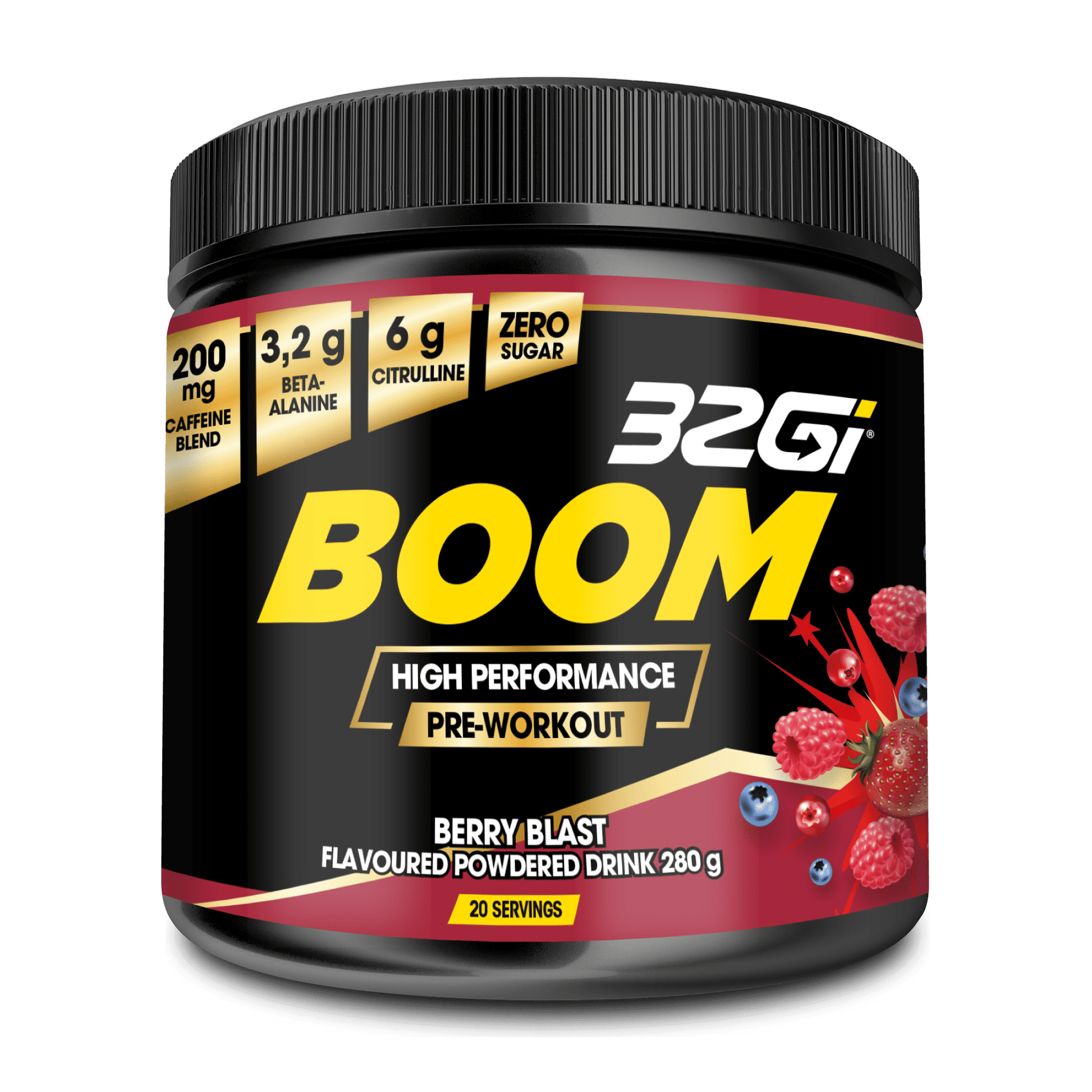 Fuelling a session is not just about calorie driven energy! 32Gi® Boom is a slow release pre-workout that turbocharges your training sessions, delivering pure energy for up to 6hrs…without the dreaded crash.